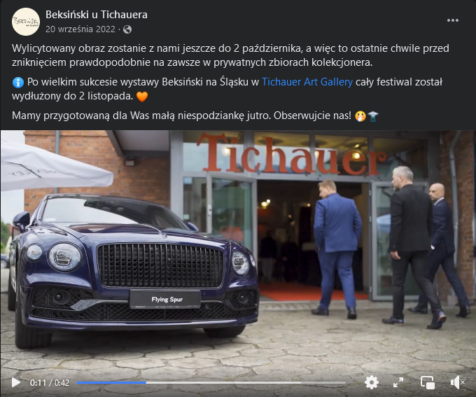 Przy dodatkowym evencie – licytacji obrazu Beksińskiego – wprowadziliśmy element prestiżu, podejmując współpracę z marką Bentley.